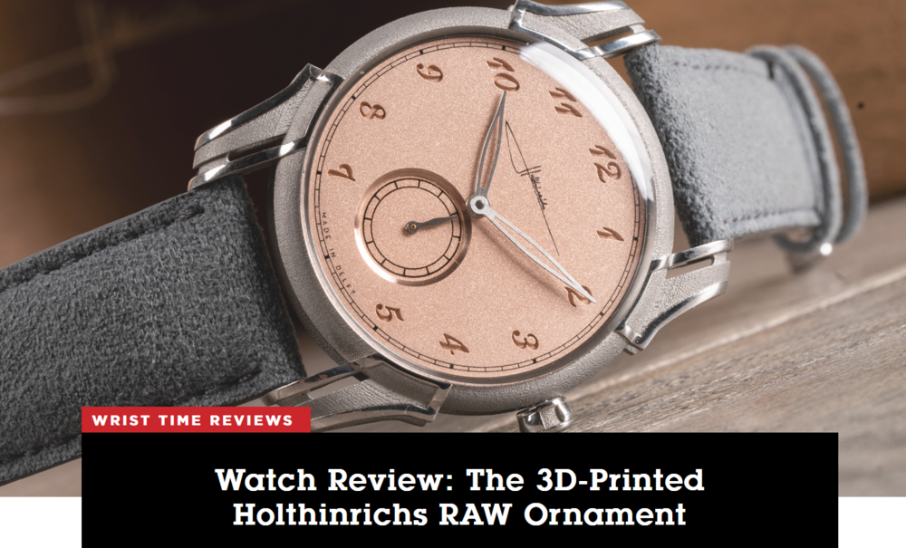 https://www.ablogtowatch.com/watch-review-the-3d-printed-holthinrichs-raw-ornament/ What’s incredible about the RAW Ornament is that it would be a stunning watch in any material, produced in any way. Holthinrichs didn’t let the novelty of the manufacturing process force it into a design that would alienate people for being too industrial or chunky or modern. Instead, the watch features elements pulled from the past and filtered through an architectural lens, with just a splash of contemporary cues as a nod to the 3D printing process. Photo credit to ABTW Read the entire article