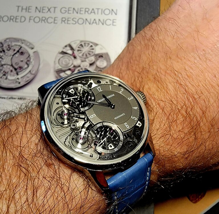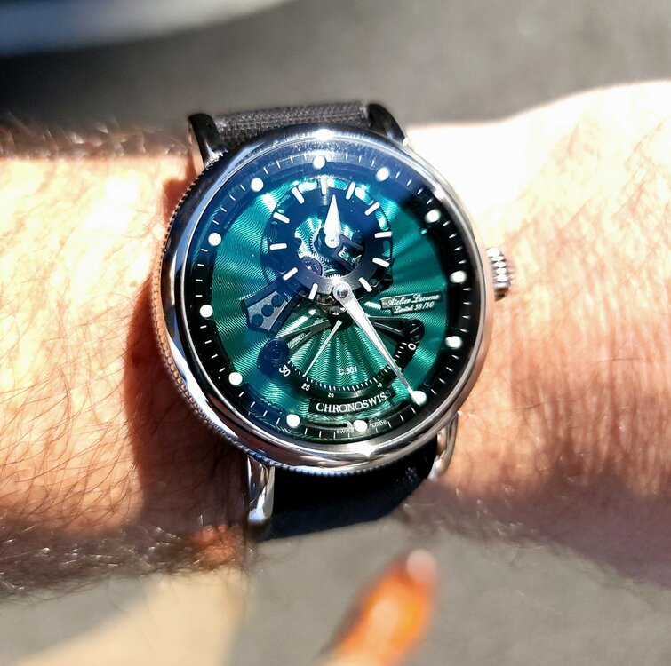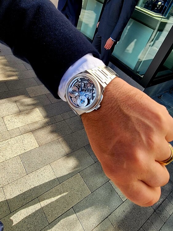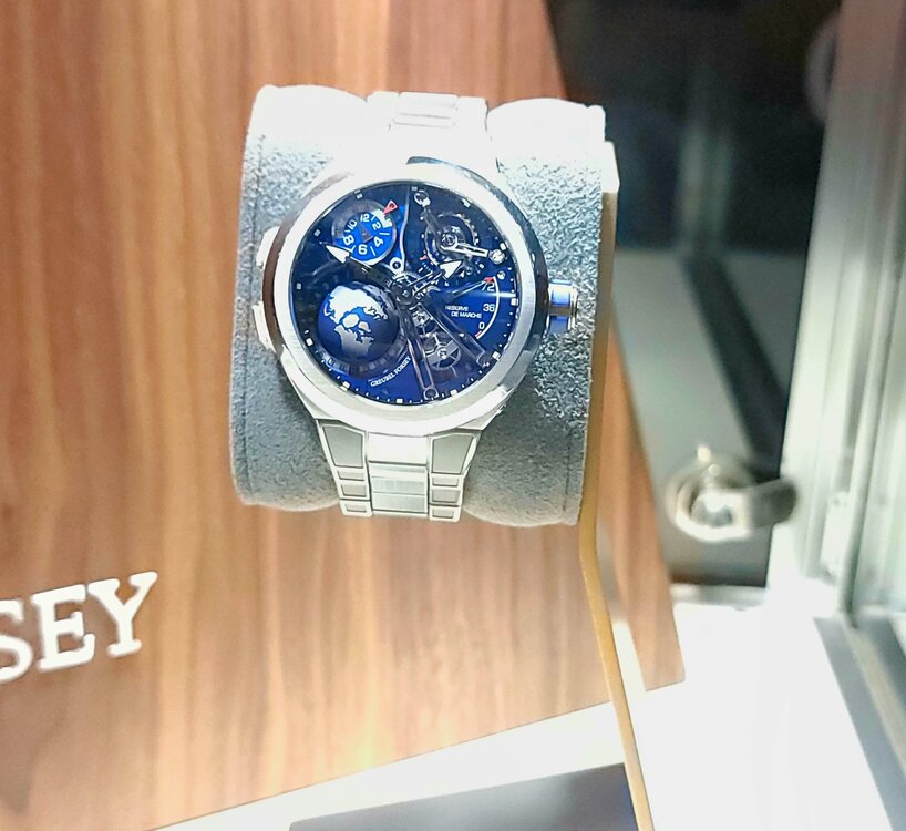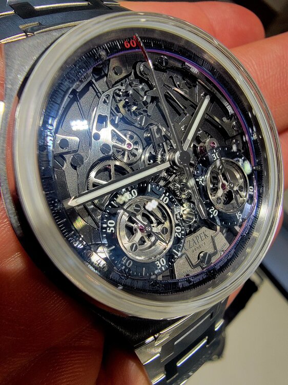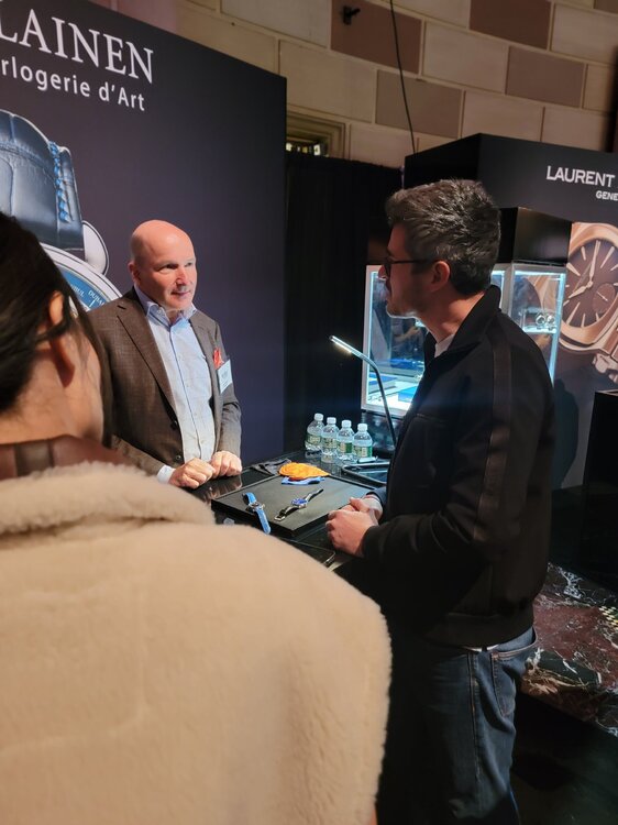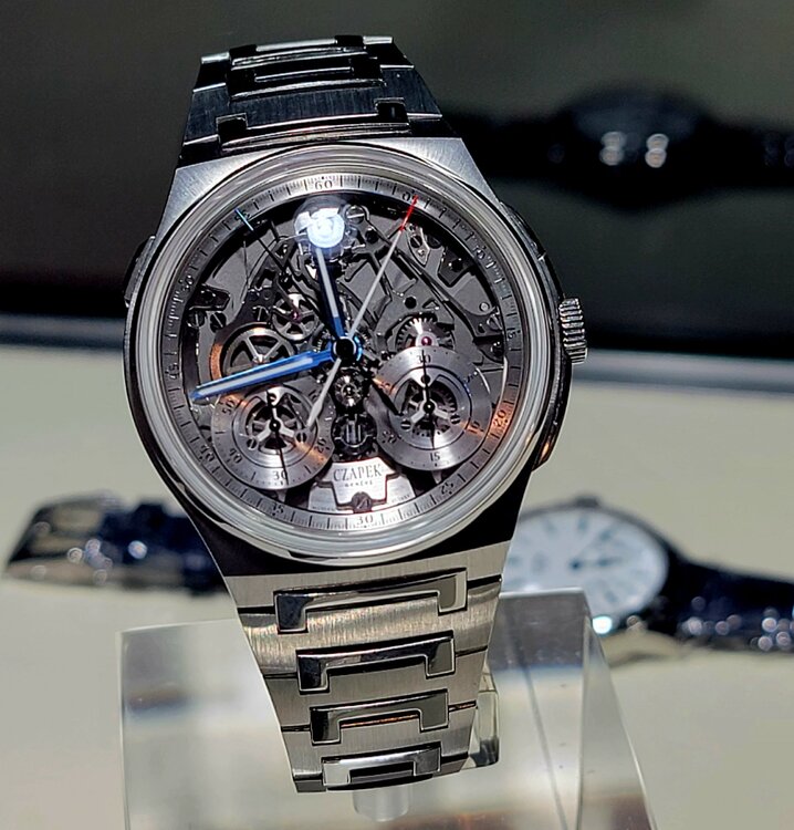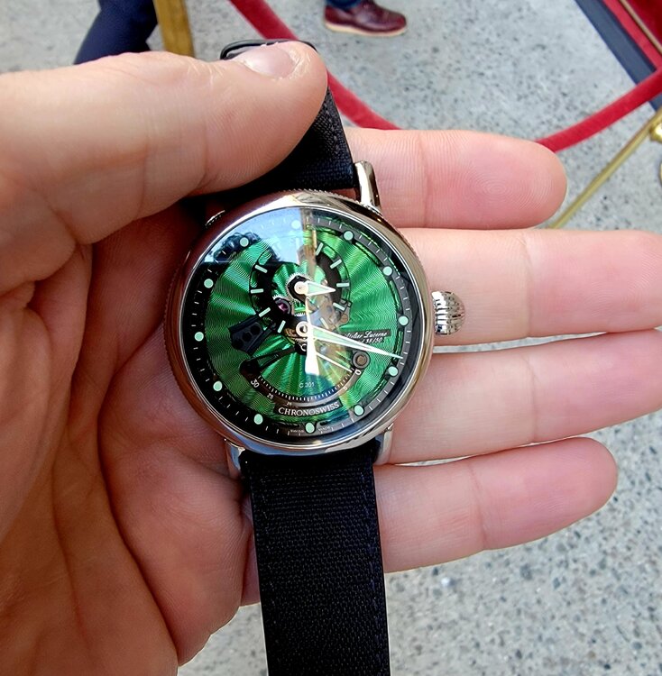19. I'll have more about the event, but suffice it to say it was extremely eye opening. It was my first trip to WatchTime and it lived up to the hype. Some highlights... Seeiing the Glacier Blue Czapek on a brushed bracelet, just like I have on order. Confirmed I made the absolute right choice. Thanks to @TheWatchEnabler for making that happen! If and the Rattrapante is just incredible in person. Also had an opportunity to chat with Xavier De Roquemaurel for a bit at Watchtime. Chatting with Kari Voutilainen. Very quiet and humble. Incredible timepieces. Helping Beat Weinmann with Chronoswiss try to sell an open Gear Resec Chameleon. The photos above don't do it justice. Just an absolutely gorgeous timepiece with a dial that has to be seen in person. The way it changes colors from lime green to sea green to aqua blue. Truly a chameleon. Thanks to Beat for trusting me with his beautiful watch. It is on my must have list now although funds are tight right now awaiting the Czapek. More to come.