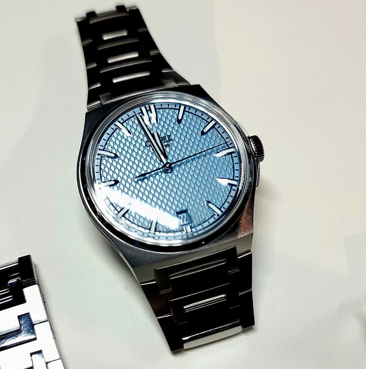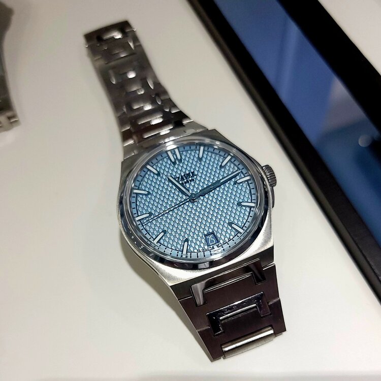 12. Love the vertical brushing on the dial and the light blue accents. Beautiful movement. This is a great new release.