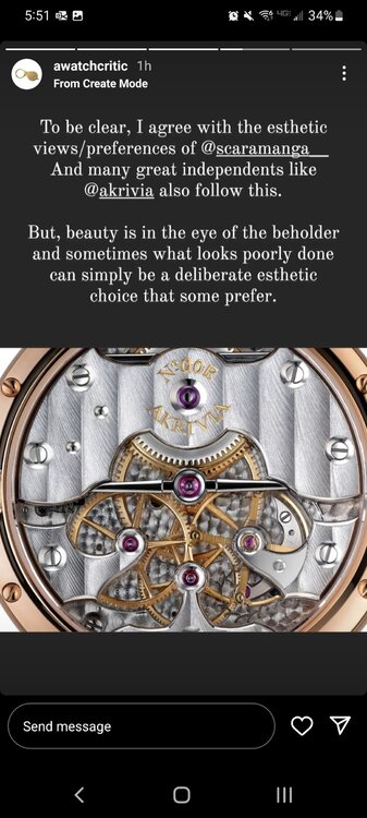 Very true. The purpose of this forum is to generally be supportive of independent watchmakers, but it shouldn't be a group think for positivity. I think honesty and candor is important. But I do hope that people think about how they approach criticism. It can be done in a positive way that promotes change, or it can be done negatively in a manner that doesn't promote change and only leads to defensiveness and entrenched opinions. It's one of my biggest concerns in moderating this board. Managing that discourse. Watches are emotional possessions, and especially so when talking about pieces that are in the tens of thousands of dollars. That emotion and passion is a wonderful thing but can also be a source of tension. In this case I think the discussion is absolutely warranted and should be out in the open. It just needs to remain honest and candid without being accusatory or demeaning.