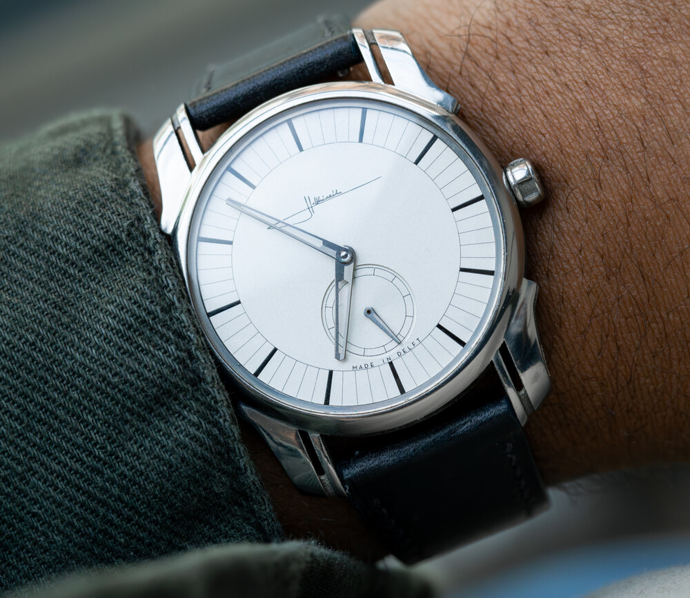 Het vorige model deed dit echt kut. De Divido heeft een ongeverfde datumschijf en dat verbrak voor mij de hele magie van de wijzerplaat. De Divido 2.0 heeft een geverfde datumschijf en een roulettedatum waarbij de even dagen zwart zijn en de oneven dagen wit. Die datum had van mij volledig zwart gemogen, maar ik ervaar het totaal niet als storend. Op de foto’s lijkt dat stuk uitgesneden wijzerplaat ook gigantisch maar om de pols zie je het niet echt terug.